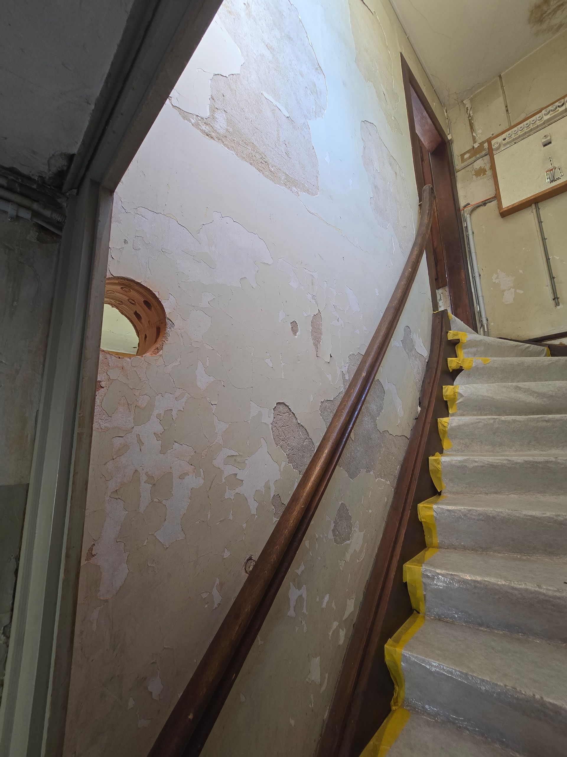 Sanierung Terrasse. Malerarbeiten Balkonbrüstung. Komplettes Entfernen des nicht haftenden Farbanstriches.
